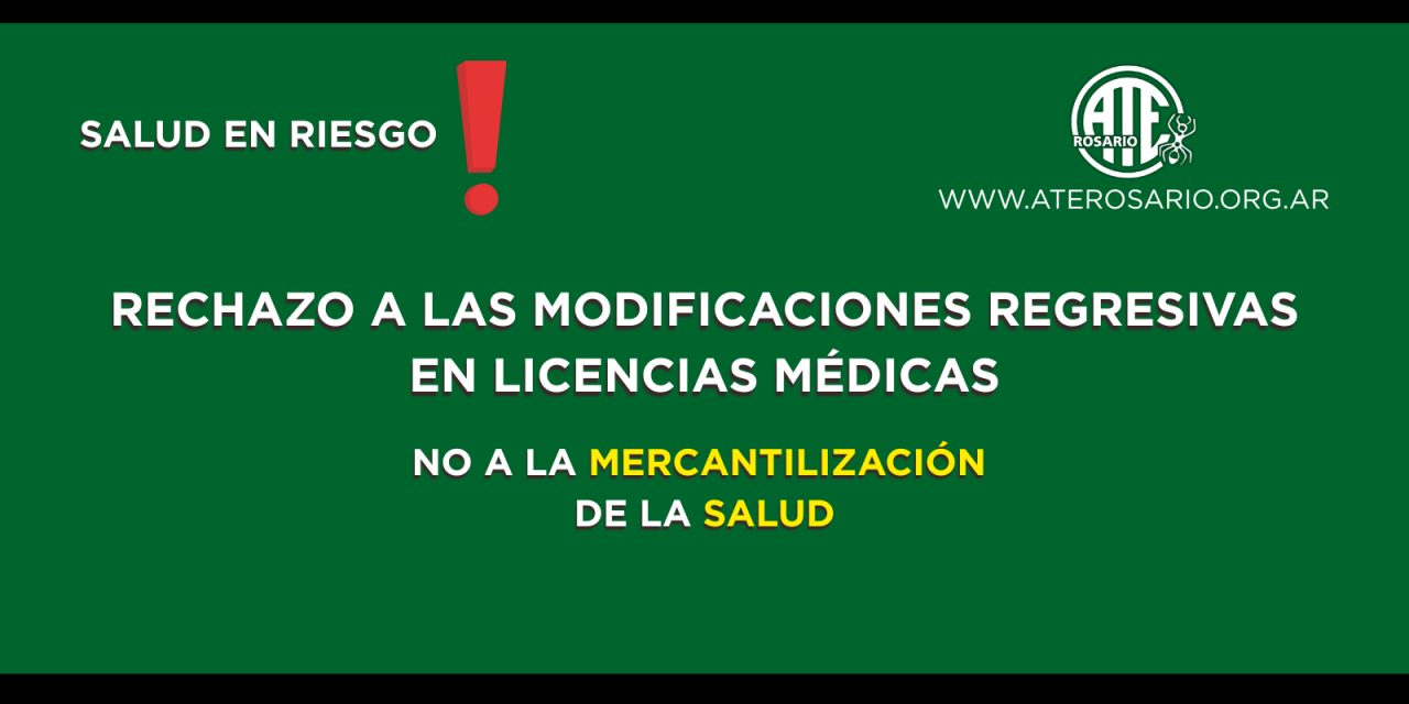 ATE Rosario expresa su posición ante la concreción de la tercerización en el área de licencias médicas, que afecta a 150 mil estatales de la provincia. Se desplaza el rol del médico tratante en enfermedades de larga y corta. No hay precisión alguna sobre cómo se abordarán las causales de enfermedad en el Estado. Preocupación por la protección de datos.