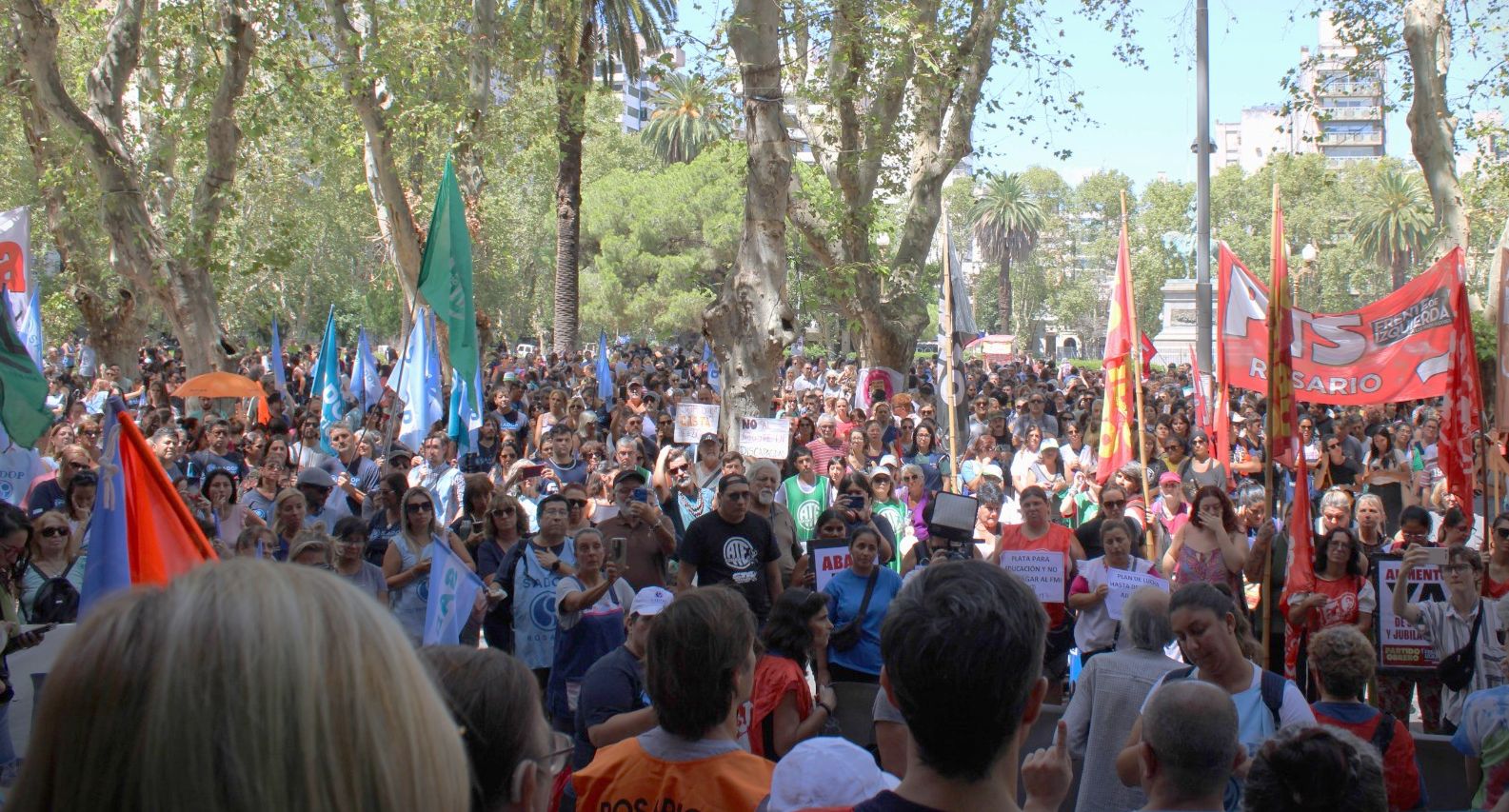 Estatales provinciales cesaron tareas y concentraron en Plaza San Martín junto a otros sindicatos. Calificaron al gobernador Pullaro de “mentiroso” y exigieron el pago de lo adeudado de 2023. Se va camino a una jornada nacional de lucha a fines de febrero.