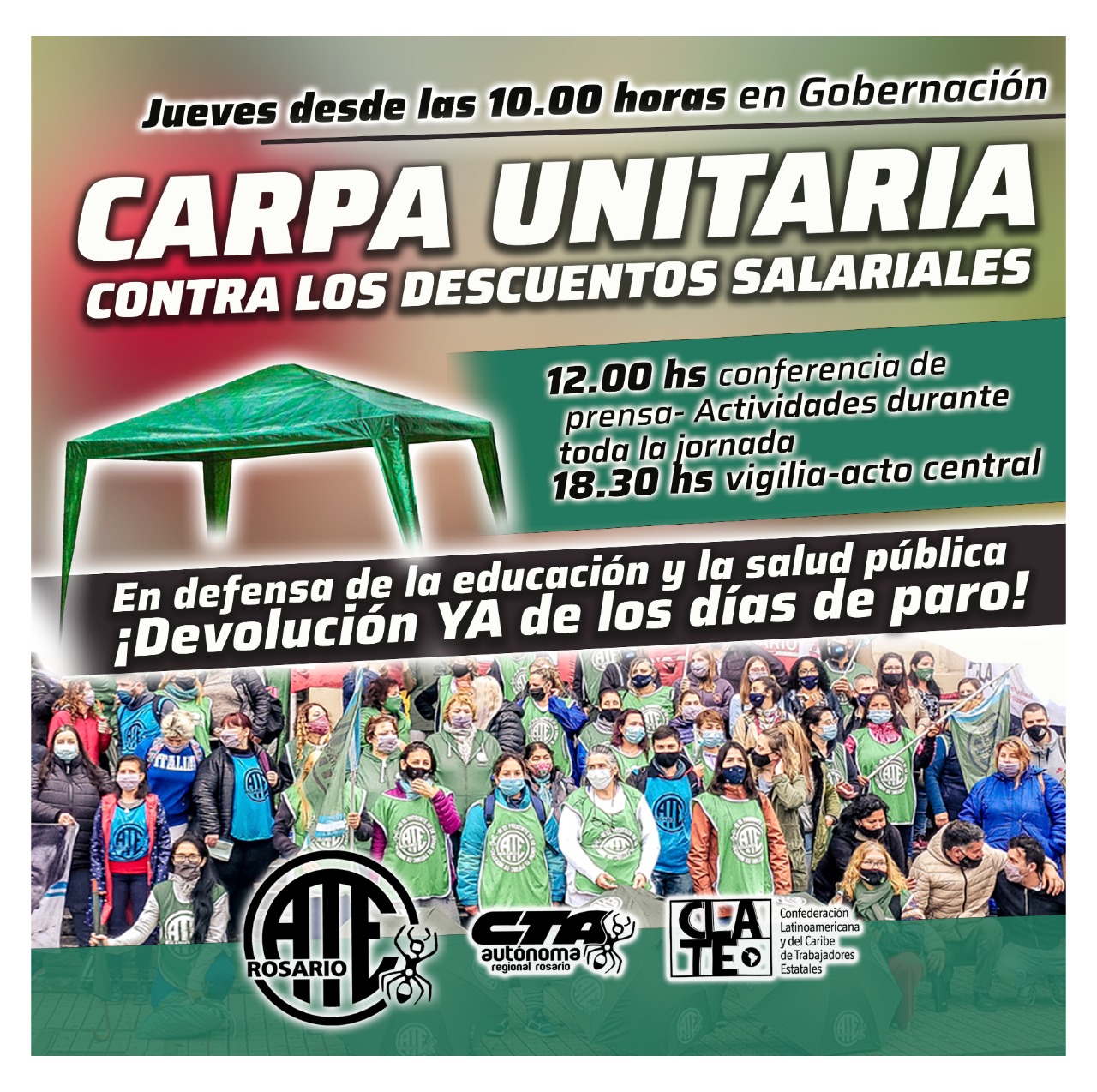 La jornada planteada “en defensa de la educación y la salud públicas”, sale a marcar fuerte la cancha ante una de las acciones más repudiables y obscenas del gobierno de Omar Perotti: reducirles el sueldo a las y los esenciales que se manifestaron en octubre por salarios dignos y condiciones de trabajo. Habrá diversas acciones en la carpa y, desde las 18.30 horas, se iniciará una vigilia con velas y antorchas, con un acto del que participarán diversos gremios y referentes.