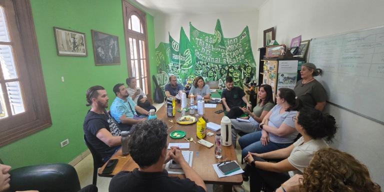 Alrededor de 200 trabajadores y trabajadoras del ámbito público y privado se reunieron en ATE Rosario marcando un hito en la política gremial de unidad de acción. Se acordó un repudio activo a la llegada del presidente Javier Milei a la ciudad la semana próxima.