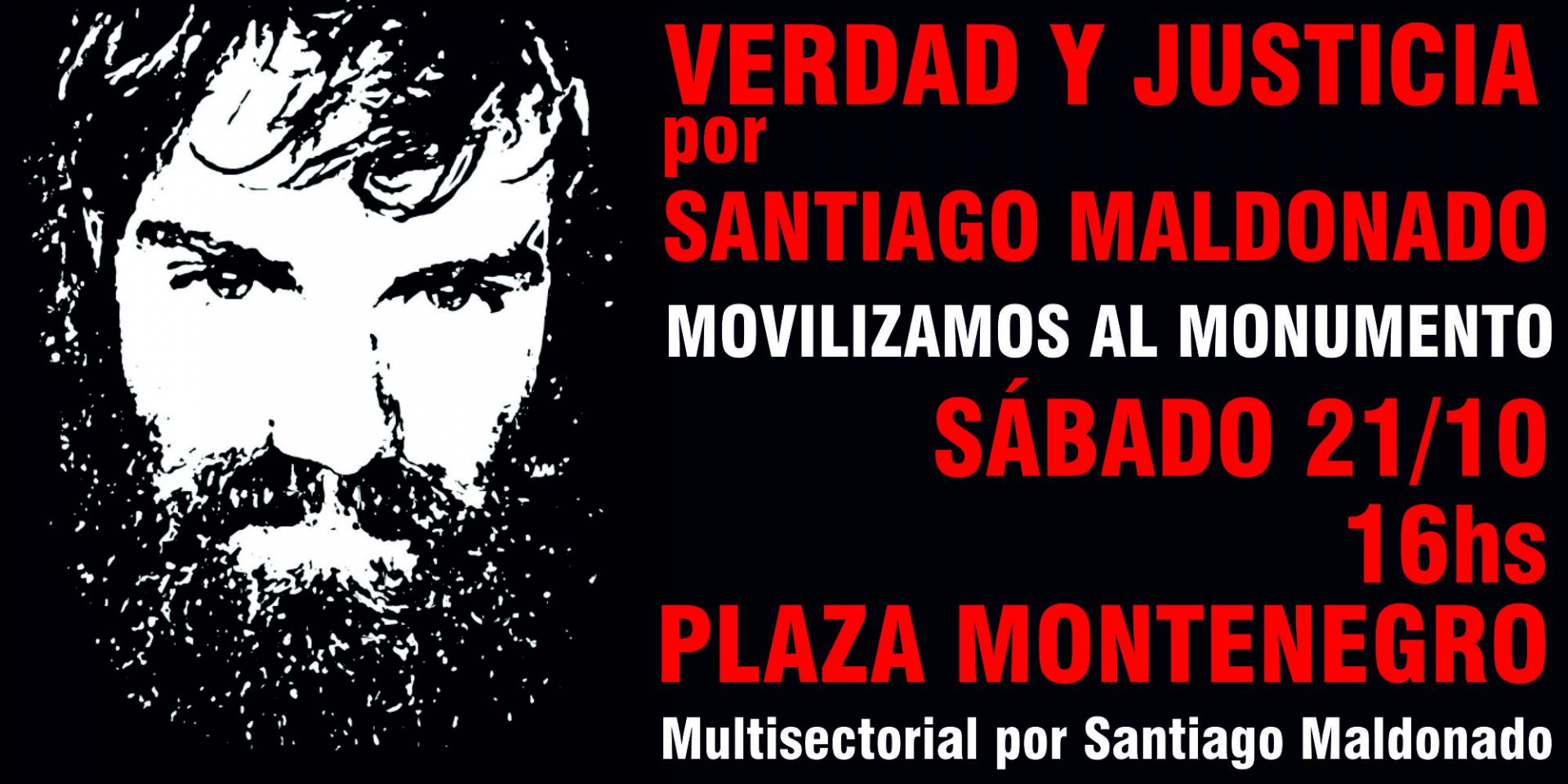 La Multisectorial conformada por organizaciones políticas, sociales, sindicales y de derechos humanos llaman a movilizarse para exigir justicia por Santiago Maldonado. La convocatoria será mañana a las 16.00 desde la Plaza Montenegro y hasta el Monumento a la Bandera.