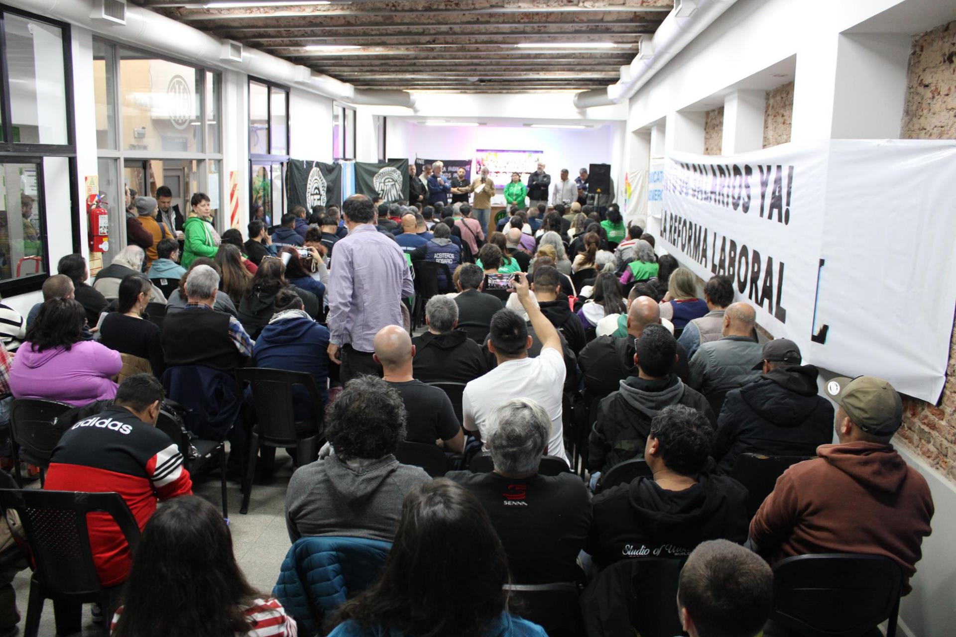 ATE Rosario, CTA Autónoma Rosario, Aceiteros Rosario, Unión Obrera Metalúrgica, Sindicato de Portuarios, Sindicato de Marítimos, Sindicato de Conductores navales, COAD, Sindicato de Encargados de Edificios, Sindicato de repartidores, Sindicato de Peones de Taxi, SUNTMA SECTOR PESCA, Delegados docentes de AMSAFE Rosario, Sindicato de trabajadores del Neumático, Sindicato de jaboneros, Trabajadores gastronómicos, Empleados de Comercio, Delegados Judiciales, Delegados del Banco de Santa Fe, Delegados del Correo, Comisión Interna de SINTON en el sindicato químico de San Lorenzo, trabajadores de Prensa, trabajadores de Coca Cola, trabajadores de farmacia, trabajadores del poder legislativo, FENAT, Jubilados Frejel, FOL, Libres del Sur, Centro Cultural CABIN 9, CCC, MATE Mirador de la Actualidad del Trabajo y la Economía.
