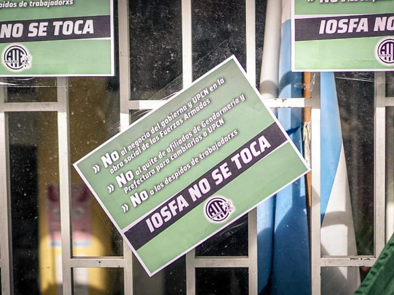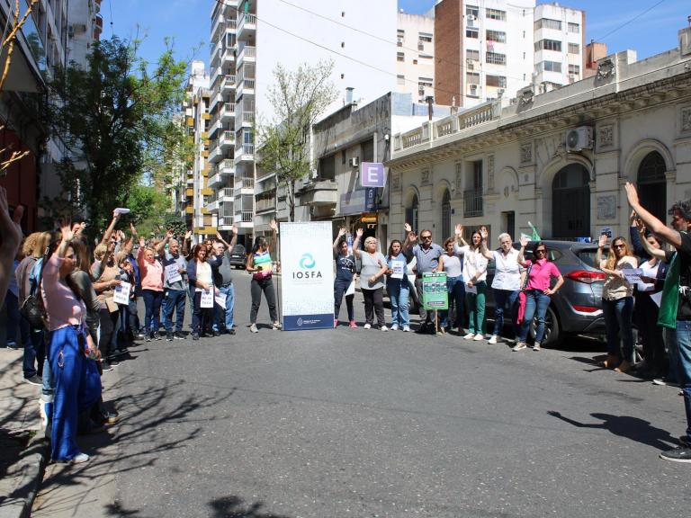 Personal y usuarios del Instituto de Obra Social de las Fuerzas Armadas y de Seguridad (IOSFA) realizaron una asamblea frente a la sede local. Denunciaron, abrazados por trabajadores nacionales de distintas áreas, que se les cortaron las prestaciones a alrededor de 20.000 personas. El próximo miércoles realizarán una nueva jornada de lucha.