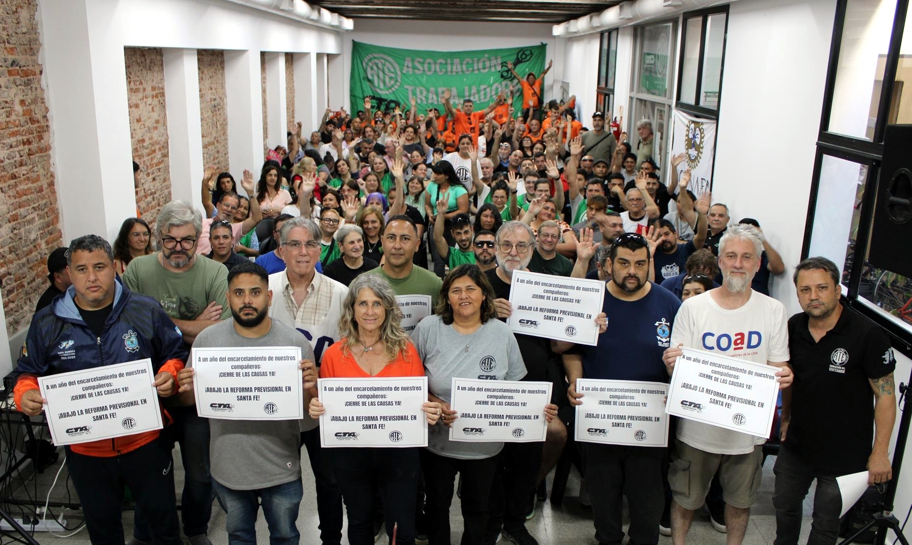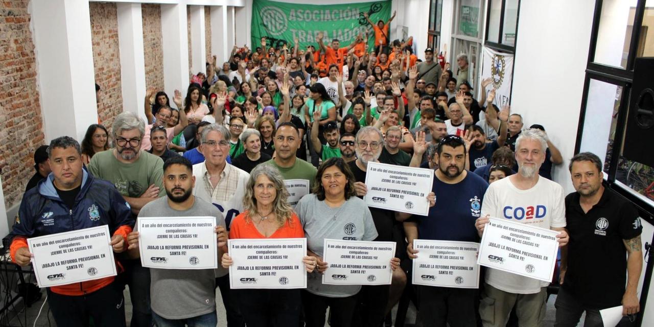 Se mencionó una y otra vez el apoyo y la solidaridad, a un año de sus brutales detenciones, con los militantes procesados por el Gobierno de Maximiliano Pullaro en Santa Fe, perseguidos por luchar contra la Reforma Previsional.